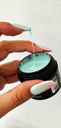 Make up builder gel 24 Baby Blue 30ML Hema Free TPO FREE -Εφαρμόζουμε μια στρώση, στρώνουμε το υλικό με το πινέλο μας μέχρι να εχ..